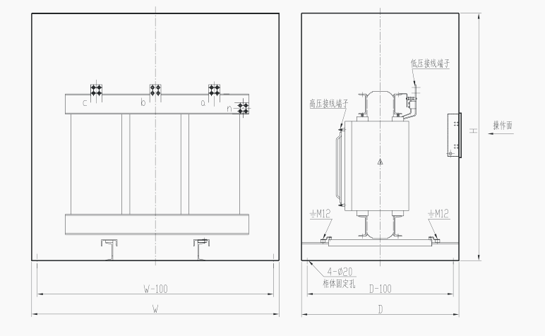 特点:可防止人体接近柜内危险部件和相应固体异物进入柜内,通风散热性能良好,变压器与柜体可分体运输及安装或整体运输及吊装。
