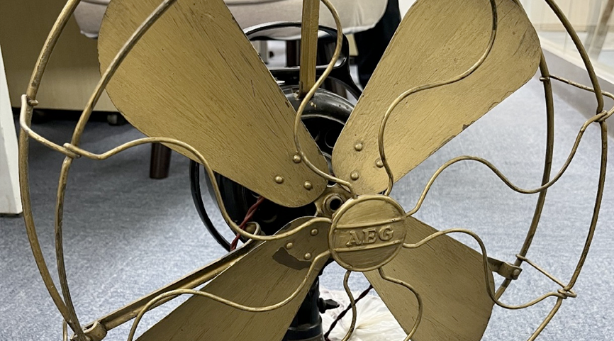 德国AEG电风扇 极具收藏价值的德国AEG牌通用电气公司制造电风扇,罩子和机芯为全铜材质,现在绝对算...